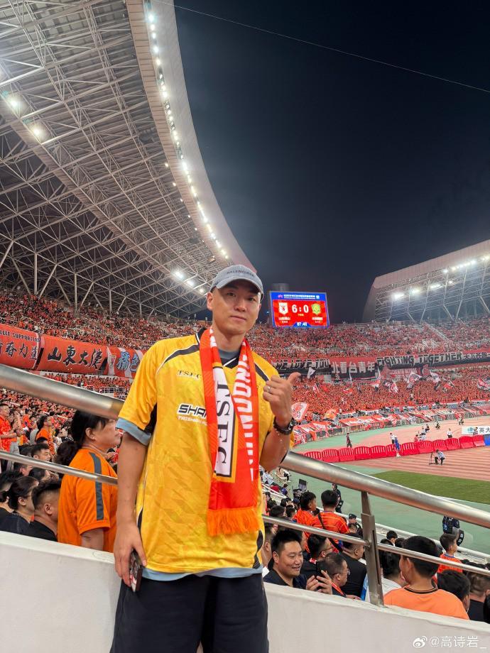 8月31日晚上,山东泰山主场6-0大胜北京国安,男篮球员高诗岩现场观看了比赛。在赛前,高诗岩就被现场报道比赛的媒体拍到,他穿着泰山队的助威服,印着王大雷的14号,还披着泰山队的助威围巾。赛后,高诗岩在社交媒体上写道:人生中第一次现场观看足球比赛,传说中的京鲁大战!现场气氛真棒比赛也真的精彩,震撼!大雷哥牛逼!!山东加油!!泰山必胜!!!...